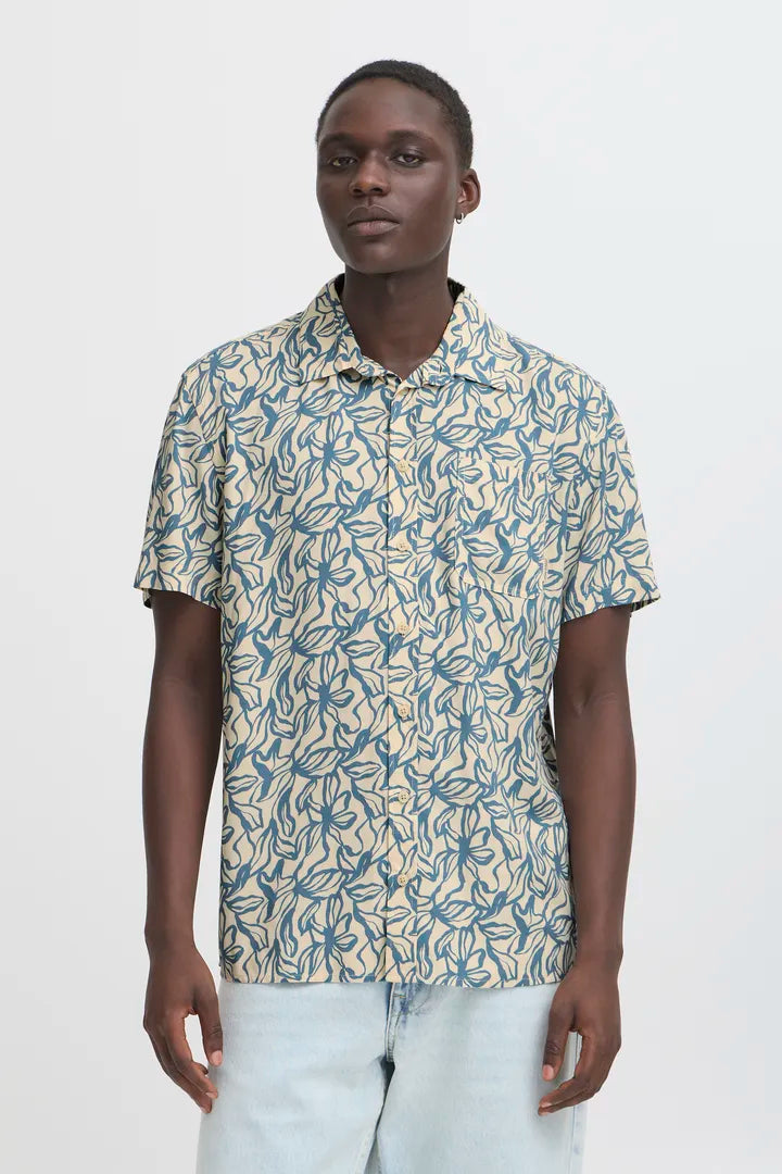 Blend Chemise manches courtes imprimé feuillage bleu pour homme