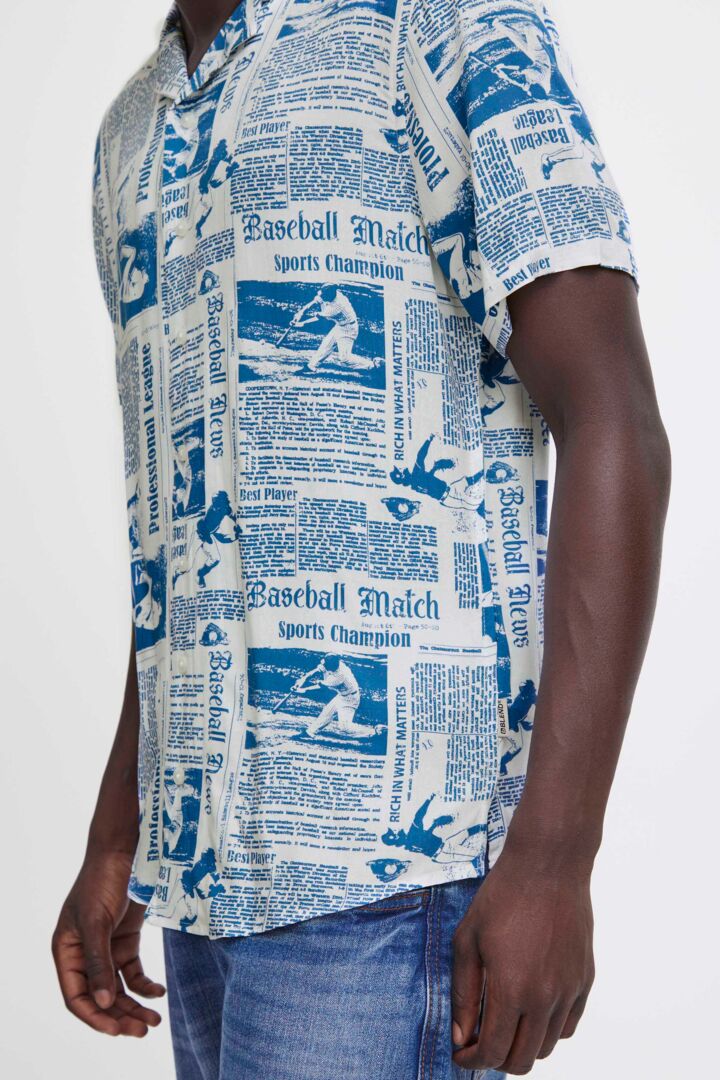 Blend Chemise imprimée à manches courtes en viscose bleu pour homme