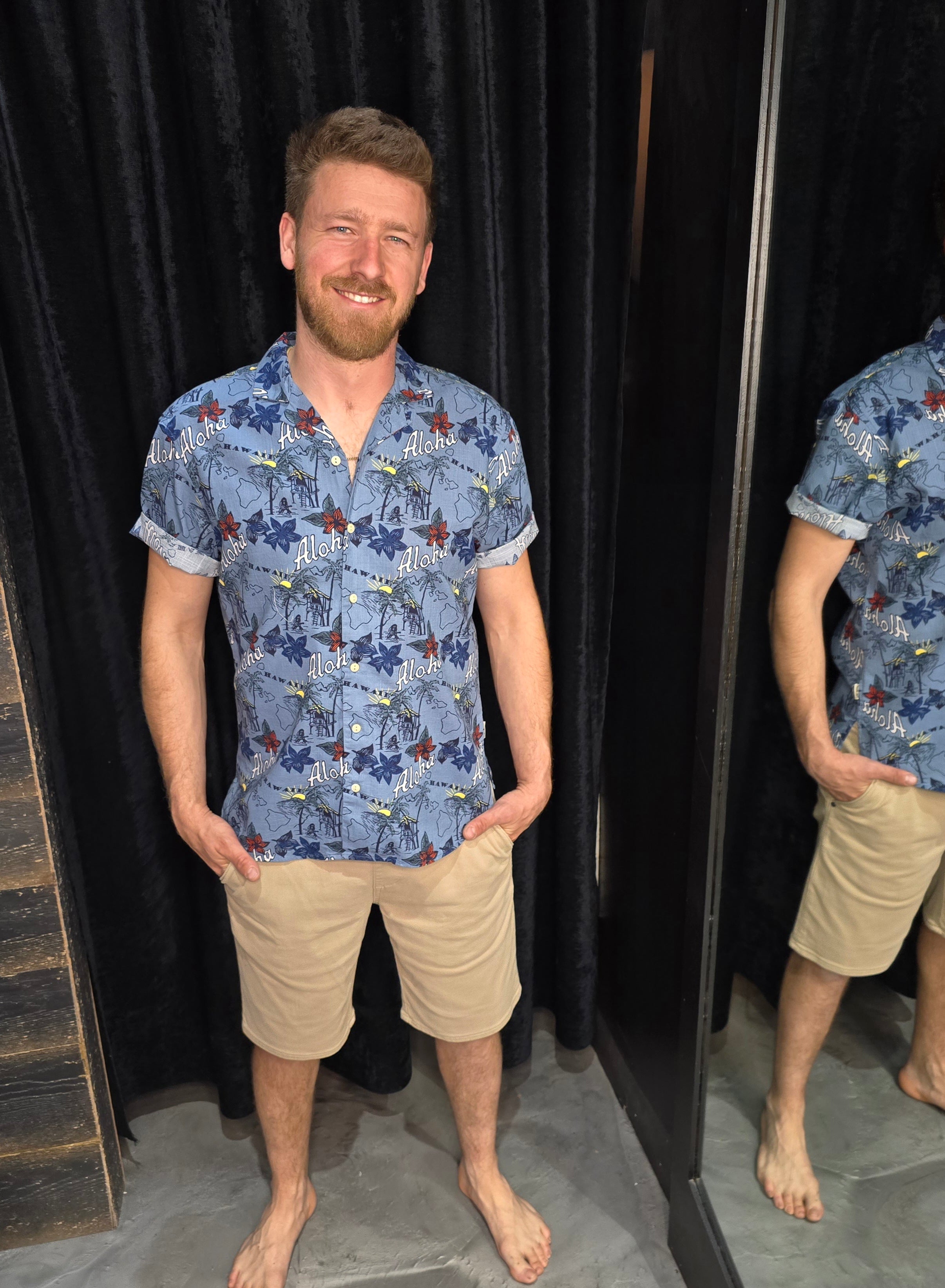 Blend Chemise marine à manches courtes avec motifs de palmiers pour hommes