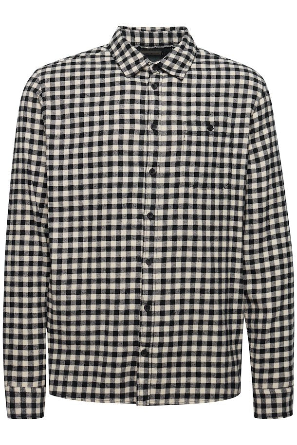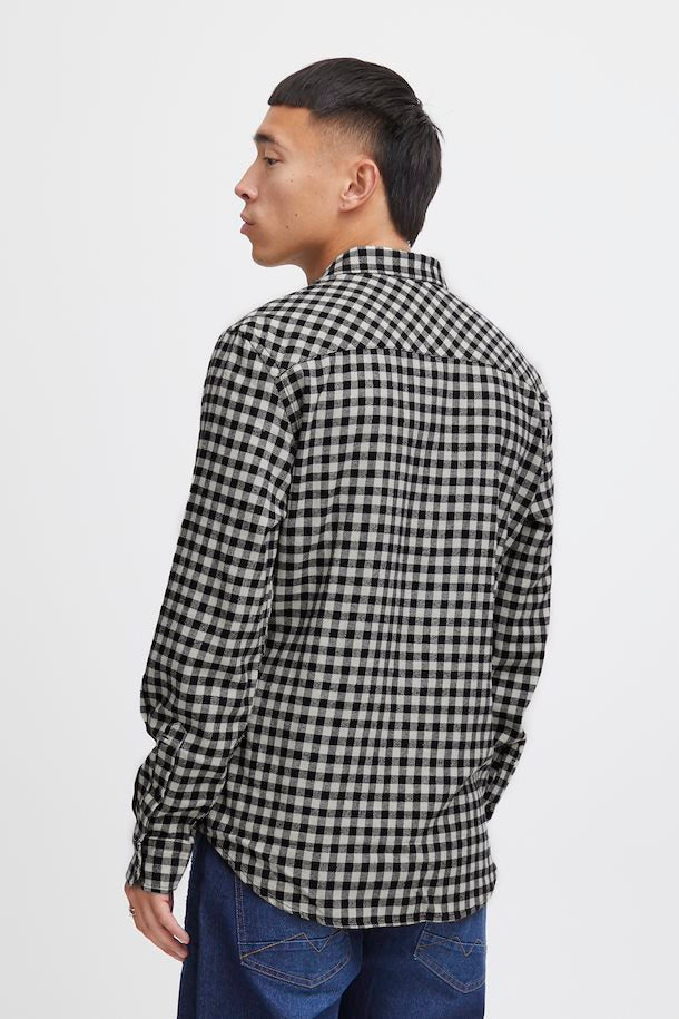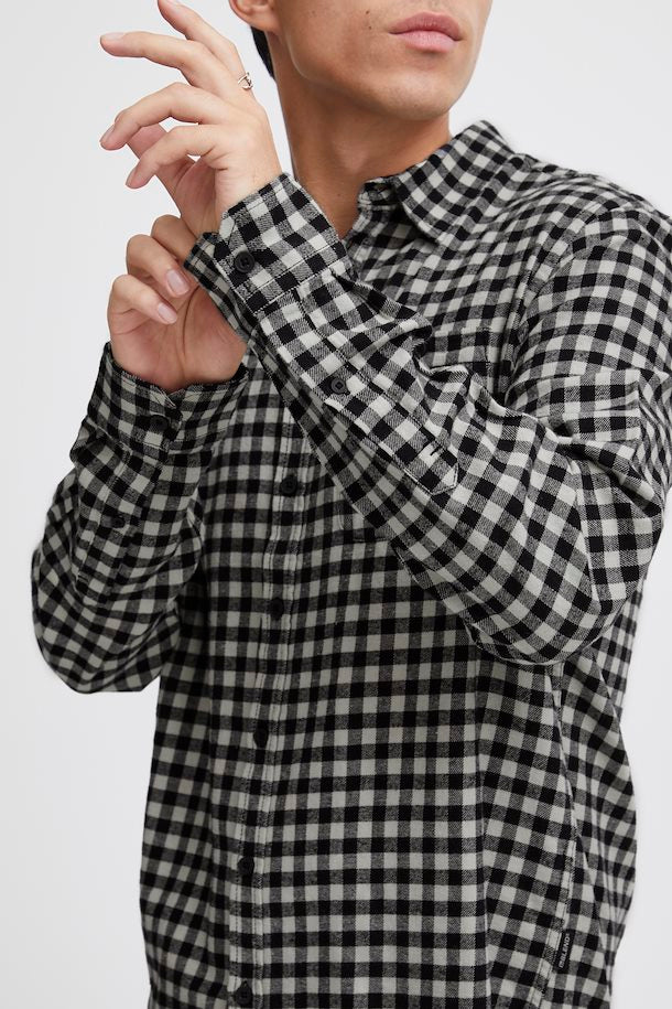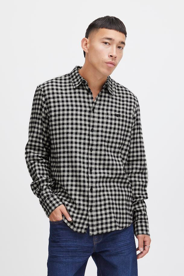 Chemise à manches longues pour homme à carreaux noir et blanc