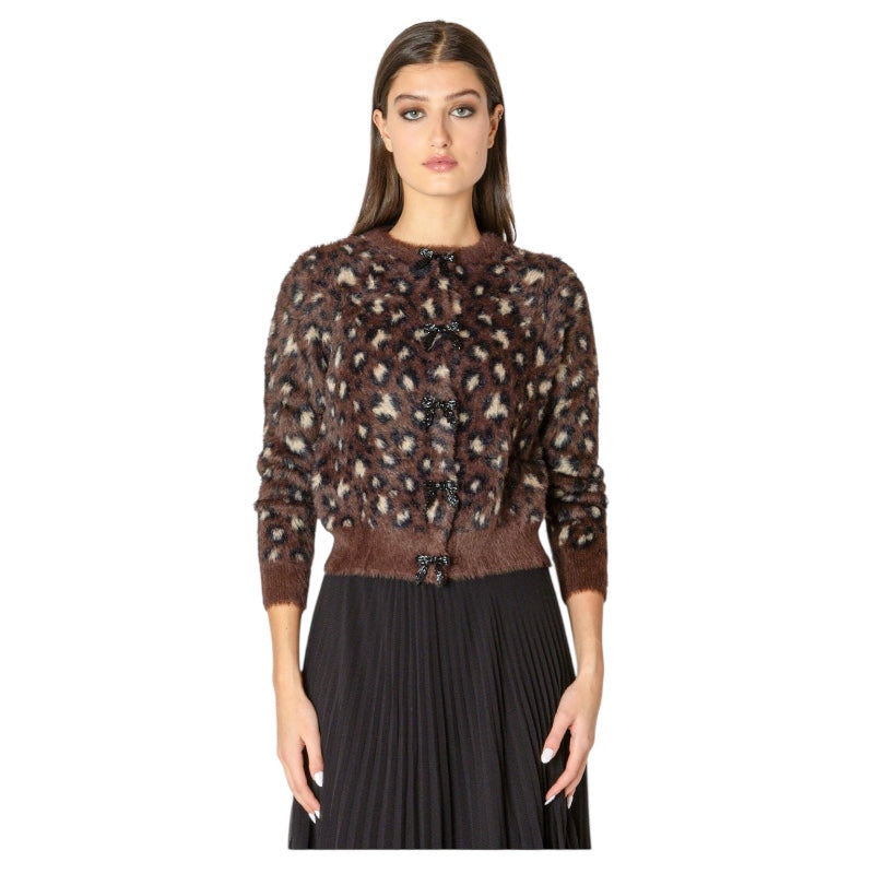 BLACK TAPE CARDIGAN À MOTIFS DOUX AU TOUCHER LÉOPARD POUR FEMME