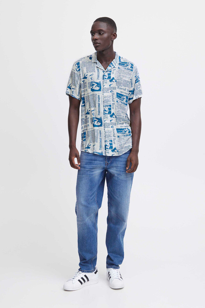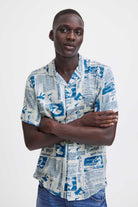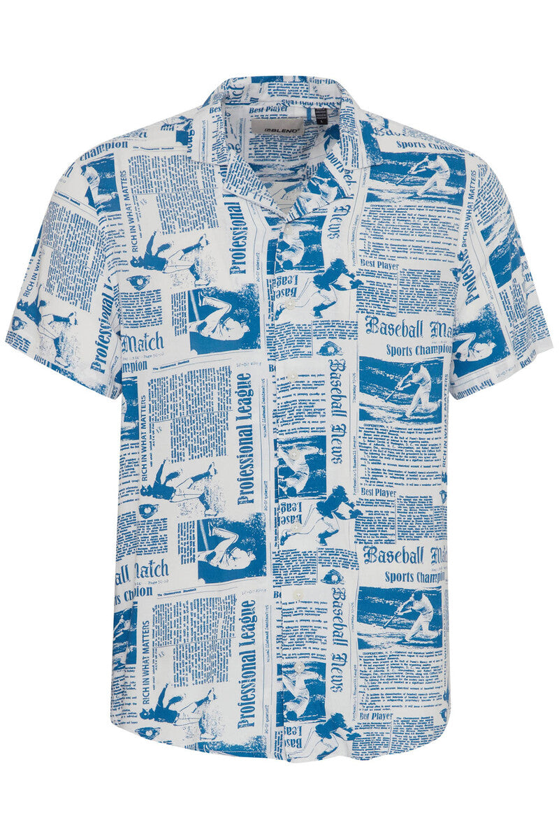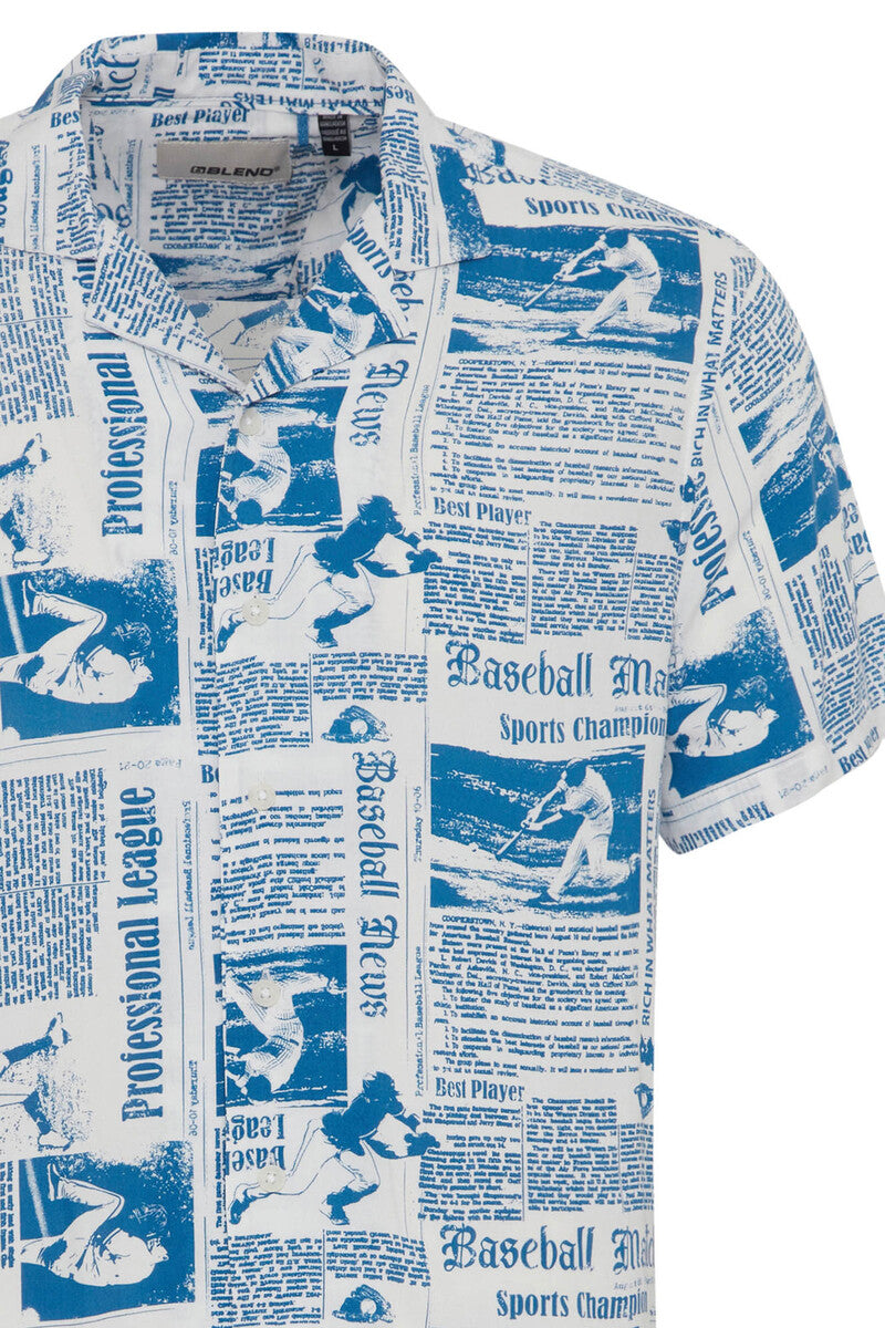 Blend Chemise imprimée à manches courtes en viscose bleu pour homme