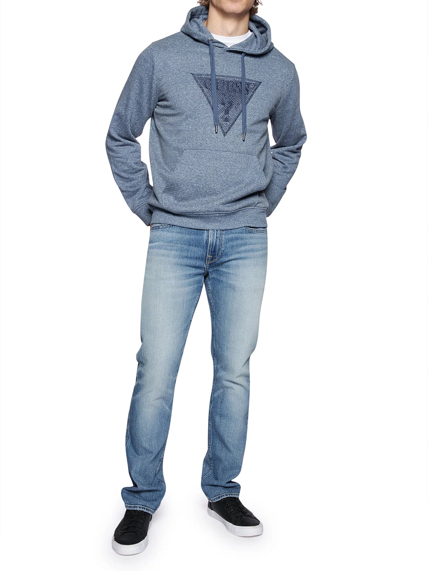 Guess Chandail capuchon bleu denim pour homme