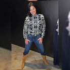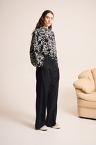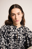 Ichi Blouse Imprimé noir et crème manches ballons pour femme