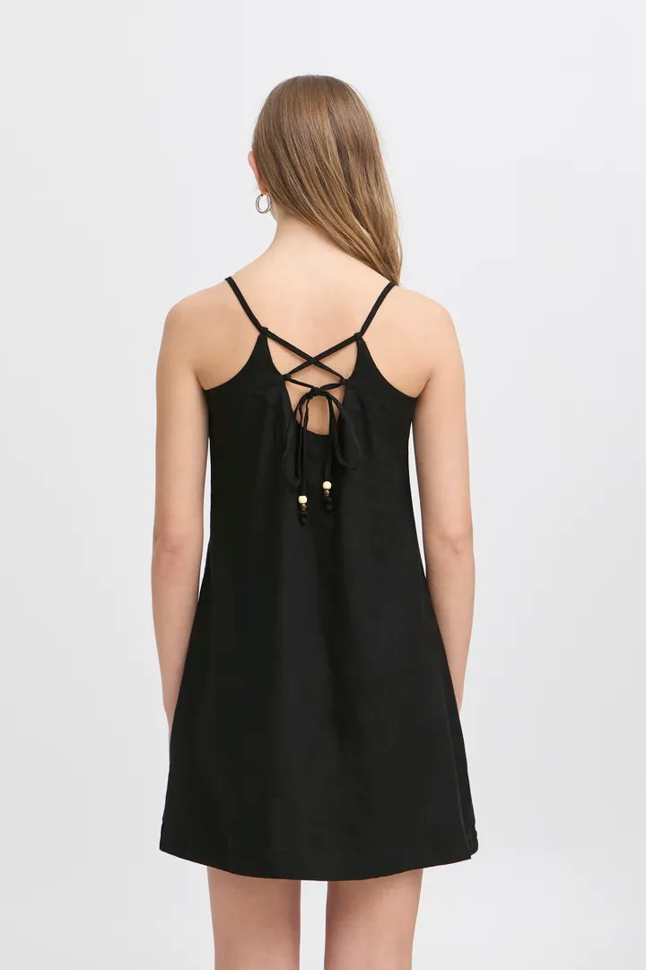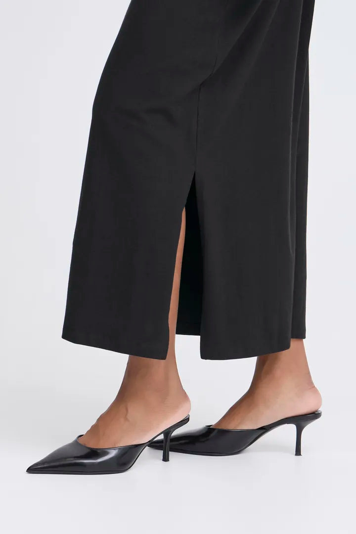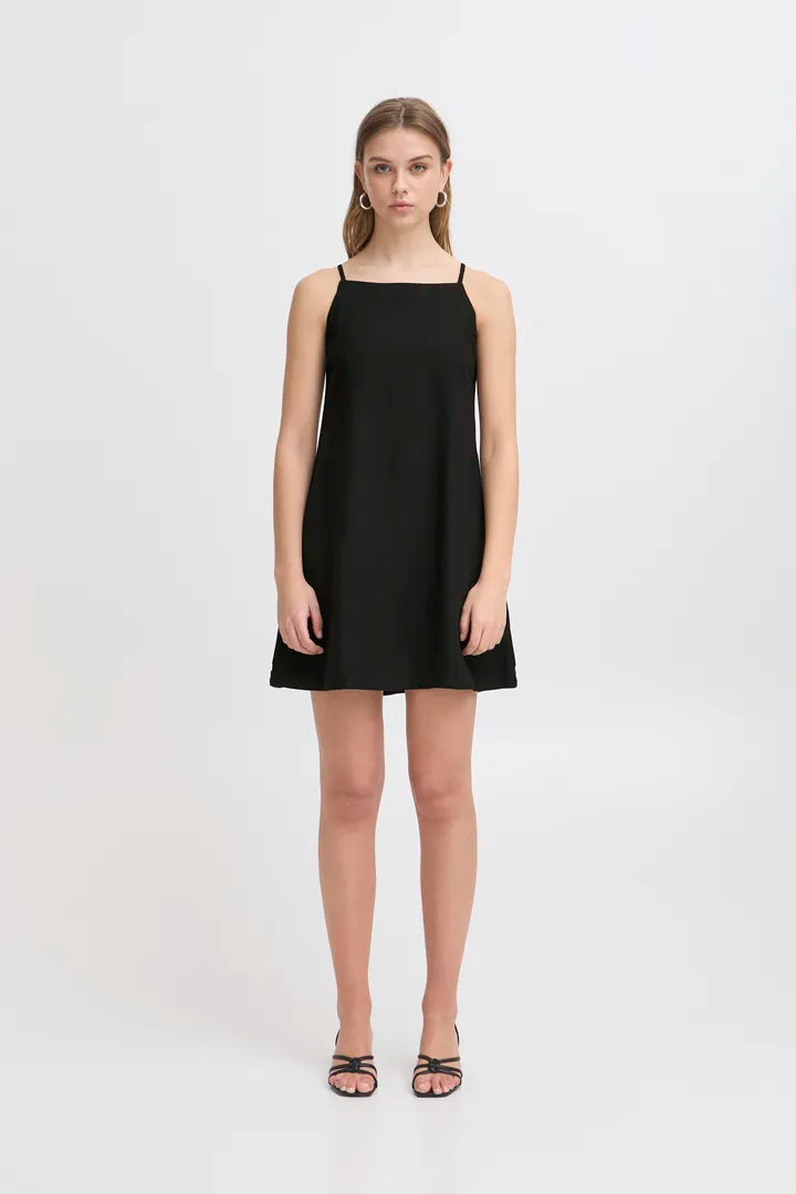 Esqualo Robe noir en velour ajusté plissé au devant col mock pour femme