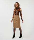 Esqualo Jupe imitation cuir tan mi-longue pour femme