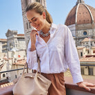 Cette blouse courte en popeline pour femme est dotée d'une bande élastique, garantissant un ajustement confortable et sécurisé. Fabriquée en popeline, elle offre une respirabilité optimale, idéale pour les journées chaudes. Son design pratique permet une grande liberté de mouvement tout en maintenant une esthétique soignée.