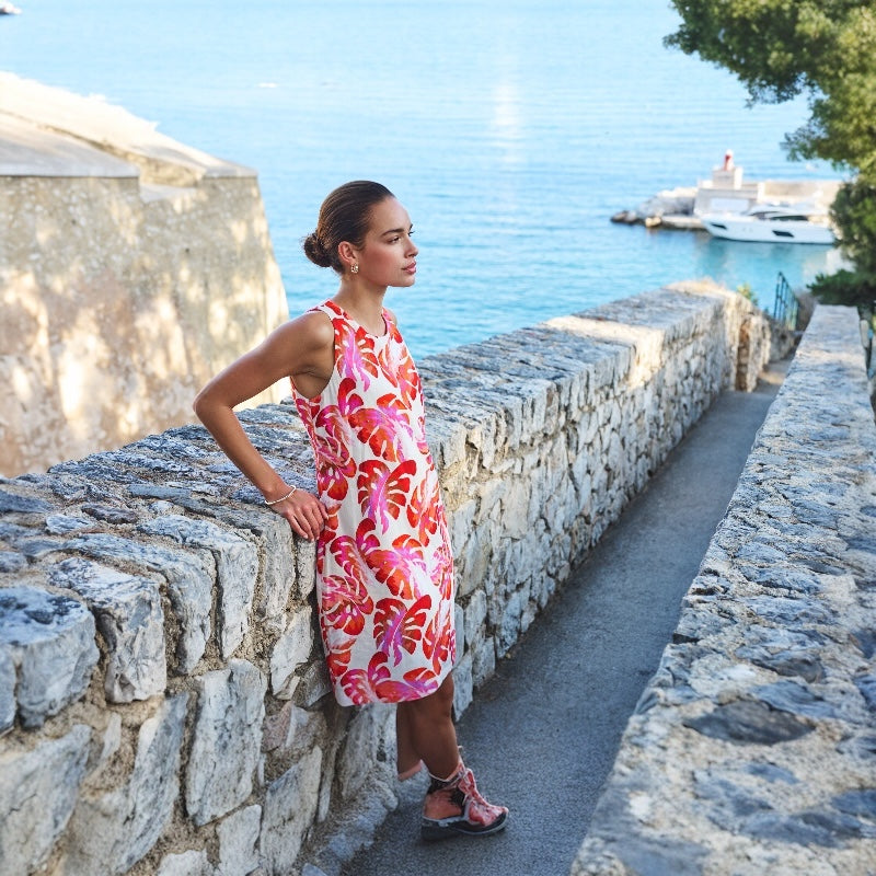 Découvrez la robe sans manche imprimée Esqualo, un modèle élégant orné de motifs de feuillage. Conçue pour allier confort et style, cette robe offre une coupe fluide qui assure une grande liberté de mouvement, idéale pour les journées ensoleillées. La composition de tissus de qualité garantit une durabilité, tout en offrant une sensation agréable sur la peau.