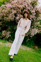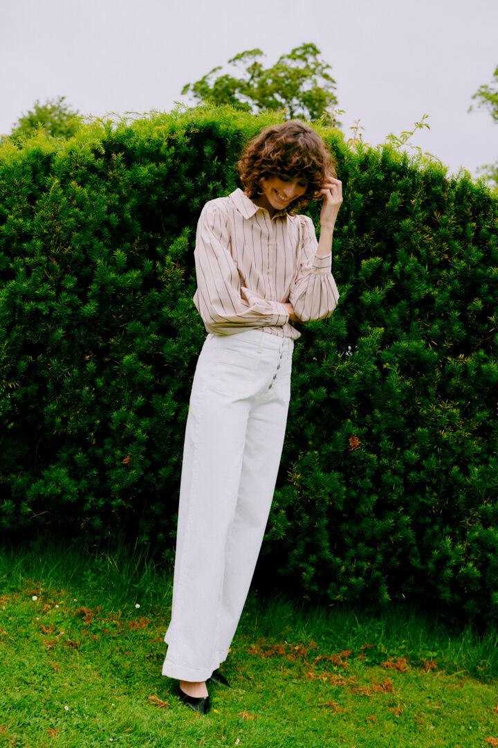 B-young Pantalon Jeans blanc taille haute deux poches pour femme
