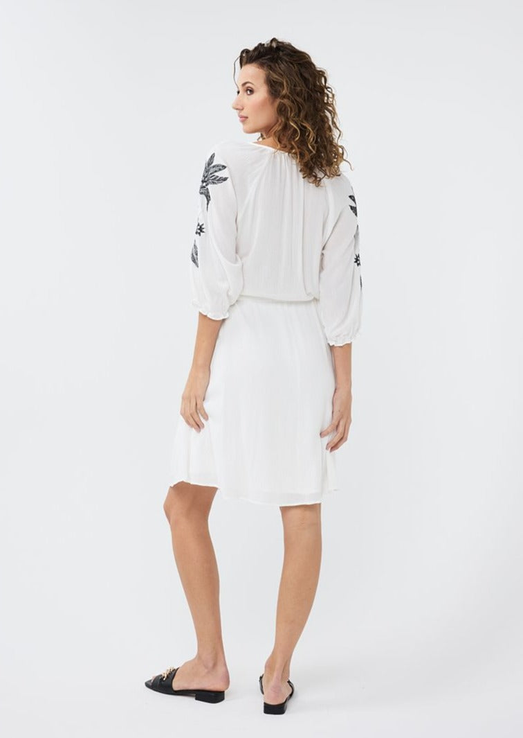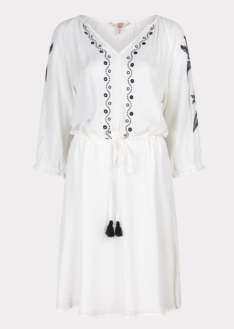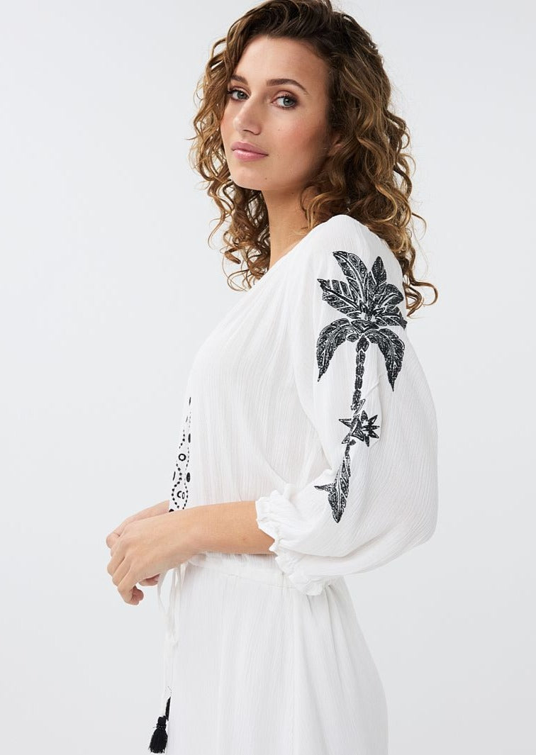 Robe de plage en viscose manches mi-longues avec détails brodés pour femme