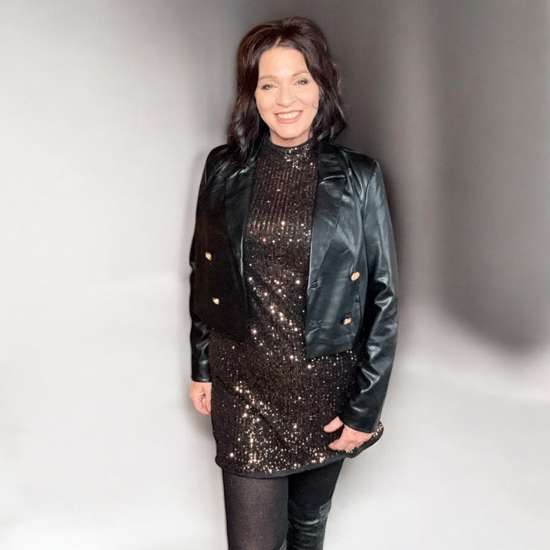 BLACK TAPE ROBE À PAILLETTES À COL MONTANT POUR FEMME