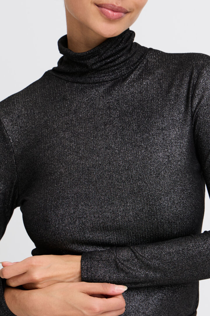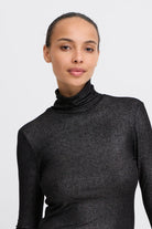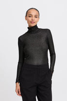 B-young Chandail col mock noir en lurex pour femme