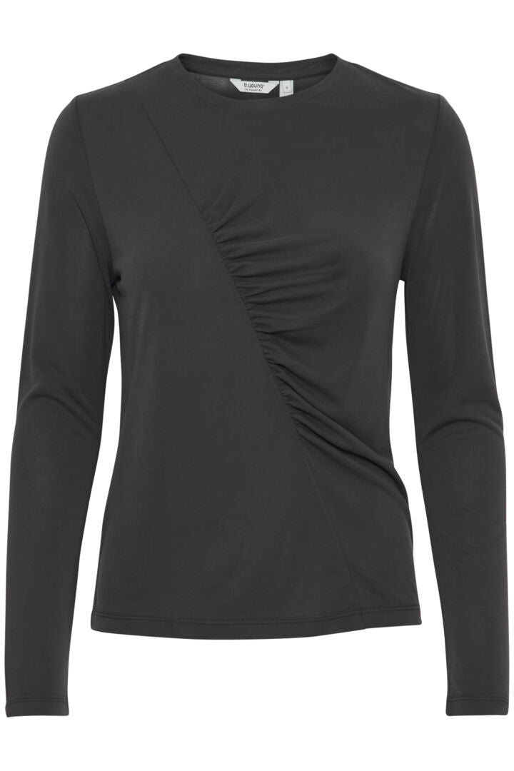 B-young Chandail col rond plissé noir pour femme